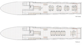 Science comes alive in the “Make Science Halle”. This design allows visitors to immerse themselves in the world of research, where they can actively use scientific tools themselves. Based on a well-structured toolbox, visible markings on the ceiling and floor provide a grid into which shelves and storage space can be integrated. Mobile tables are placed, allowing for a wide range of uses, such as communal dinners, workshops, or podcast recordings.