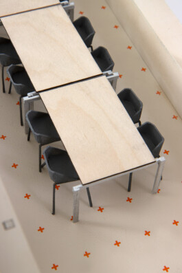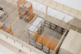 In der Make Science Halle wird Wissenschaft erfahrbar. Dieser Entwurf erlaubt es Besucher:innen in die Forschungswelt einzutauchen, in der sie die Werkzeuge der Wissenschaft selbst aktiv nutzen können. Orientiert an einer gut strukturierten Werkzeugkiste geben sichtbare Markierungen an Decke und Boden ein Raster vor, in welches Regale eingespannt, Stauraum einsortiert und mobile Tische platziert werden und somit vielfältige Nutzungsmöglichkeiten erlaubt - etwa gemeinschaftliches Dinner, Workshops oder Podcastaufnahmen.